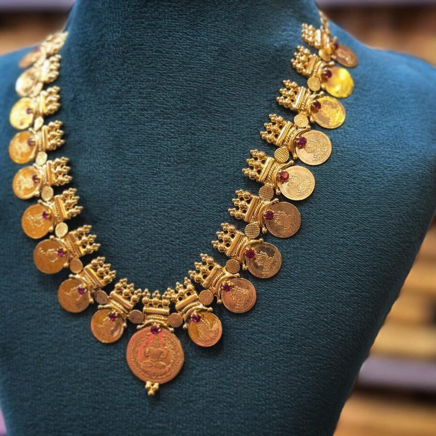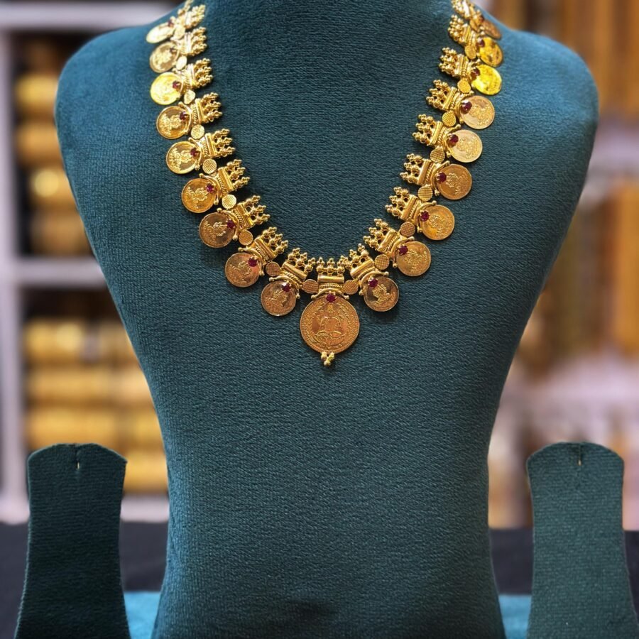 Gold plated Lekshmi kassu necklace with Ruby stones(00129)