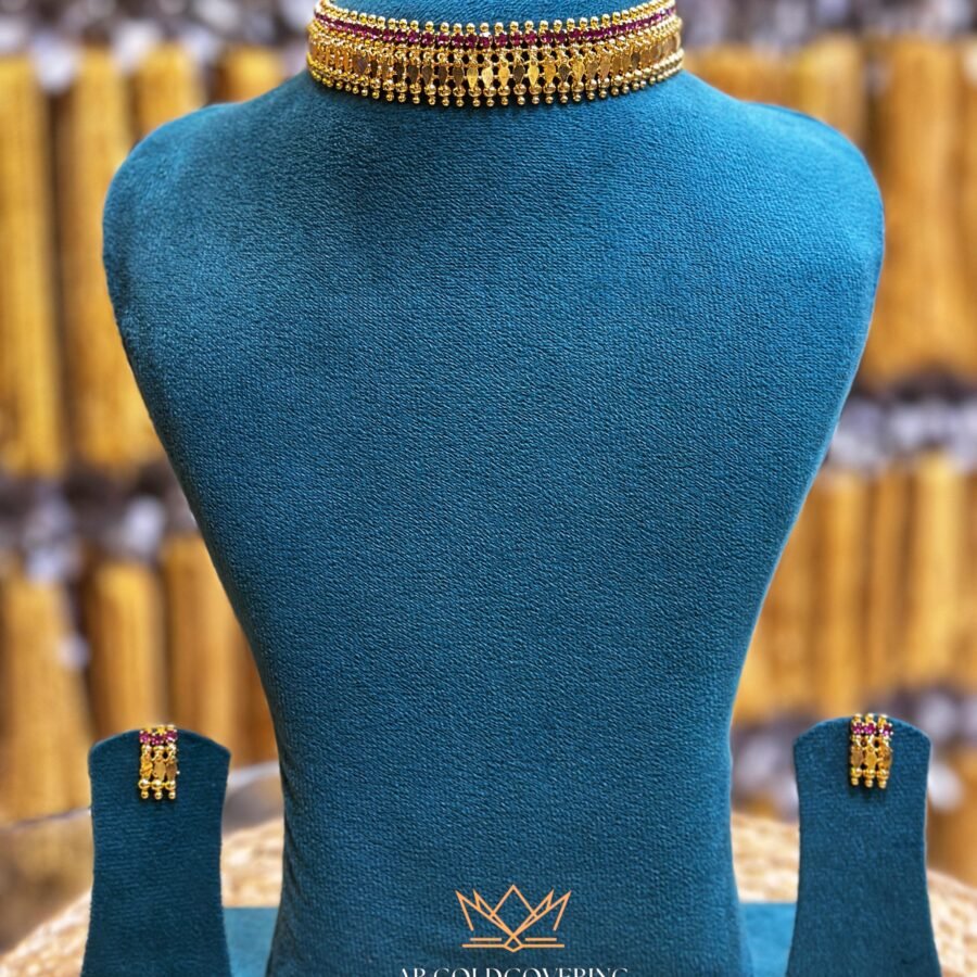 Gold plated 1 line Elakkathali with Ruby stones and with earrings(00183)