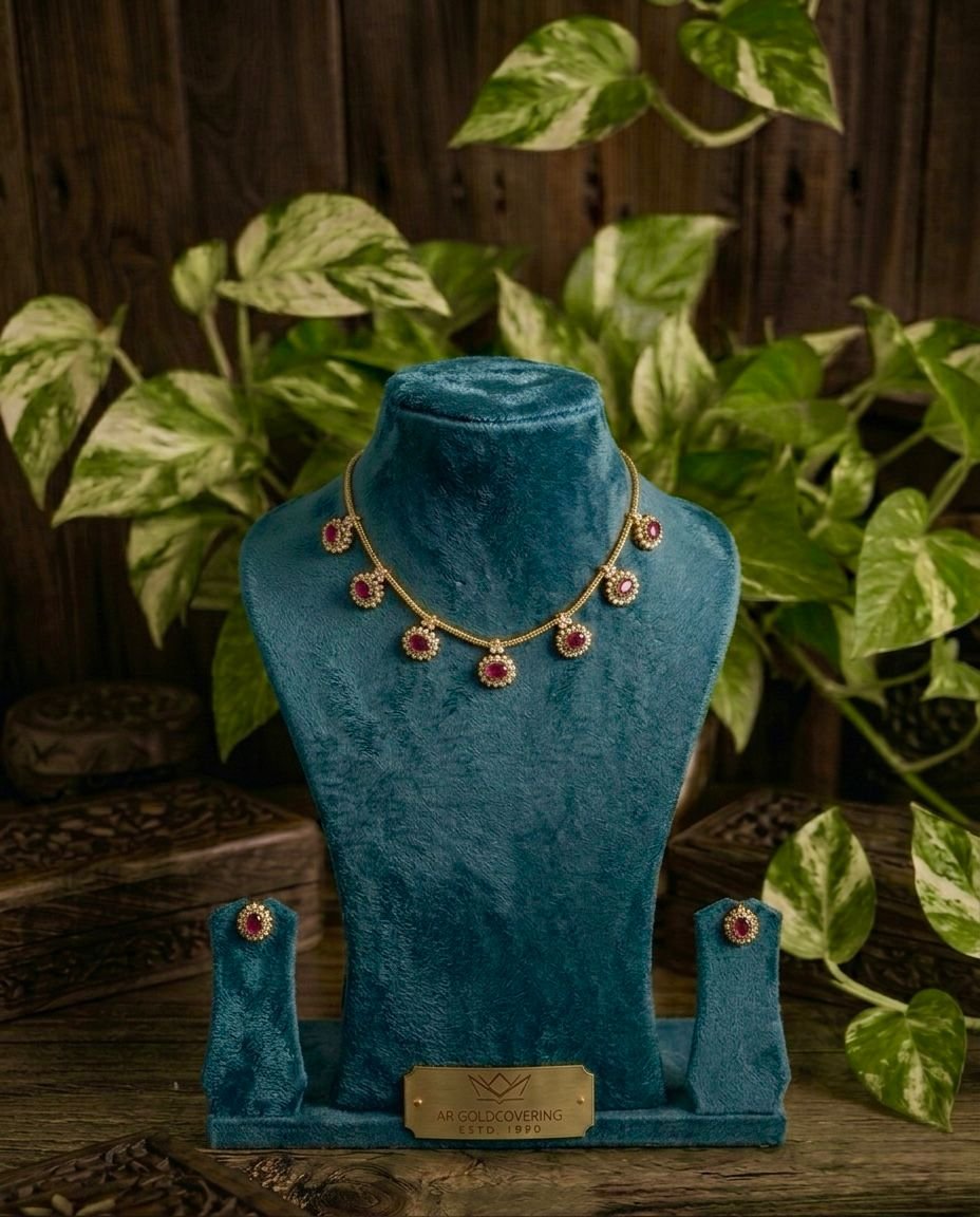 Adorn yourself in timeless elegance with this exquisite Gold-Plated Antique Finish Set. Intricately crafted and studded with brilliant AD (American Diamond) stones, this set beautifully captures the essence of traditional heritage with a touch of modern sparkle. Whether you are attending a wedding, a festive celebration, or a special event, this regal piece effortlessly elevates your ethnic wardrobe