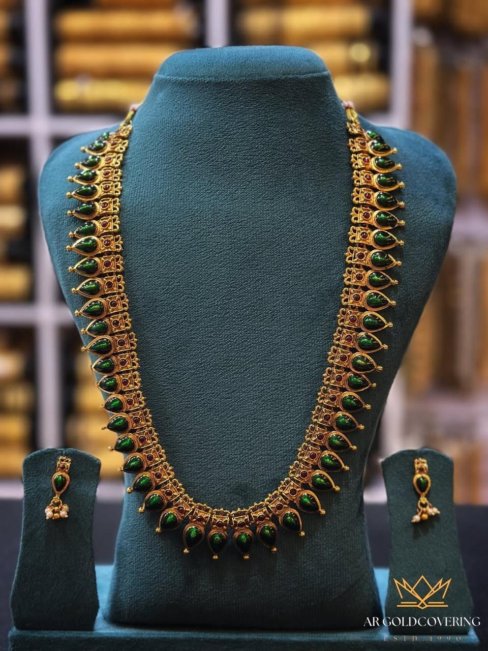 Antique finish Enamel Palakka long haram with earrings (0018)