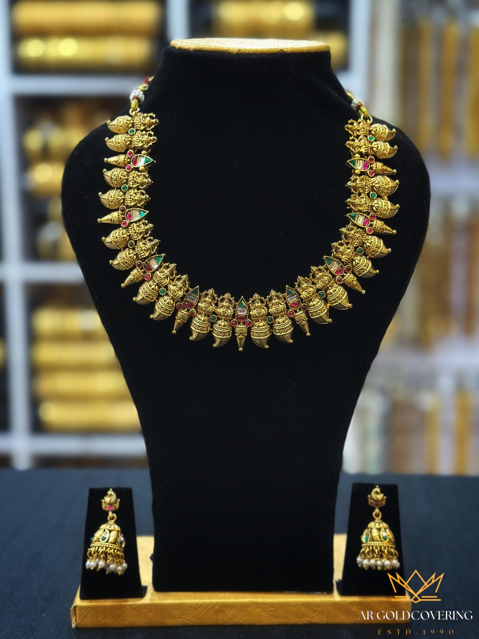 Antique finish short Lekshmi haram with jhumkas(0033)