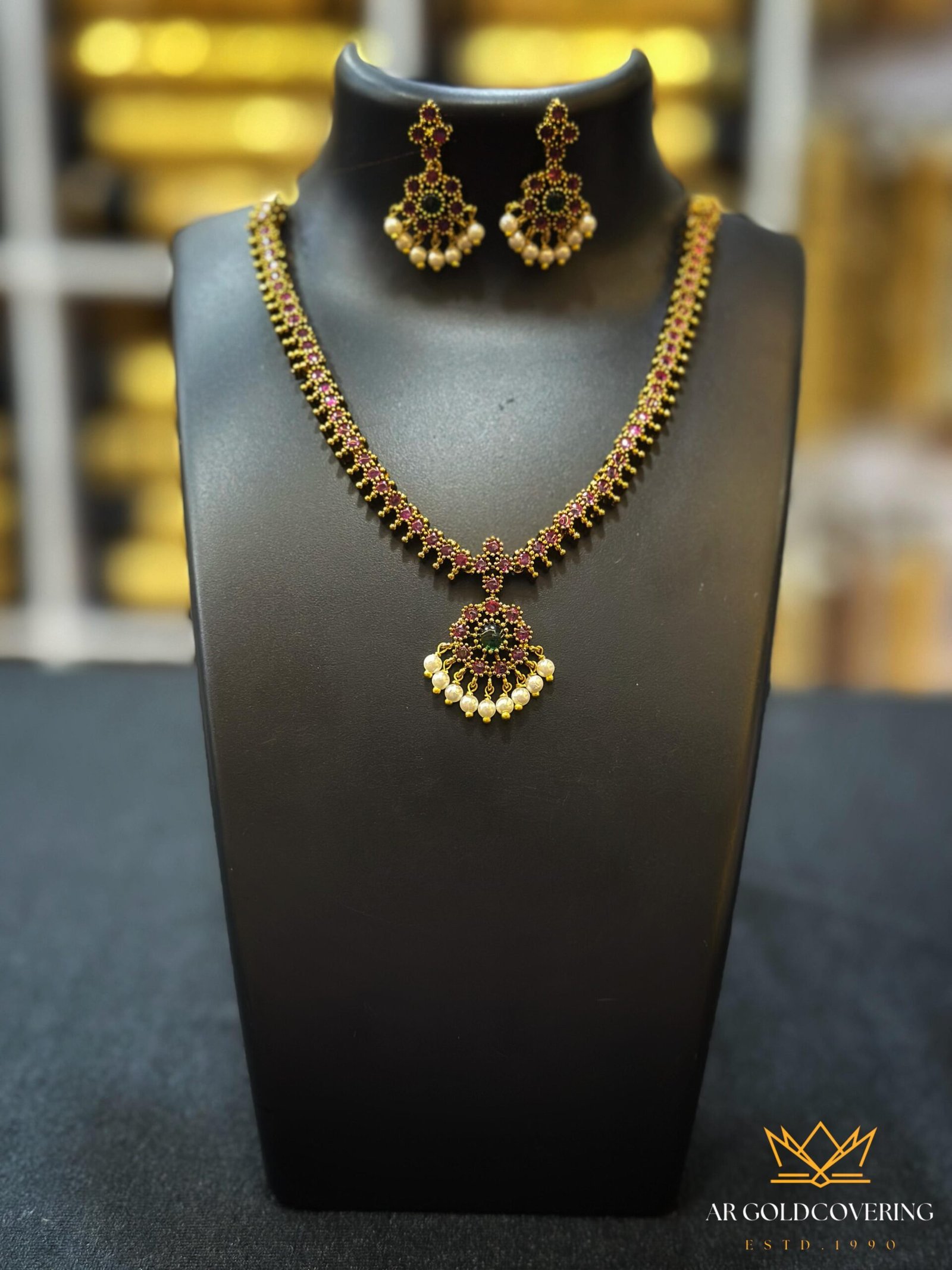 Antique finish short necklace with earrings (0085)