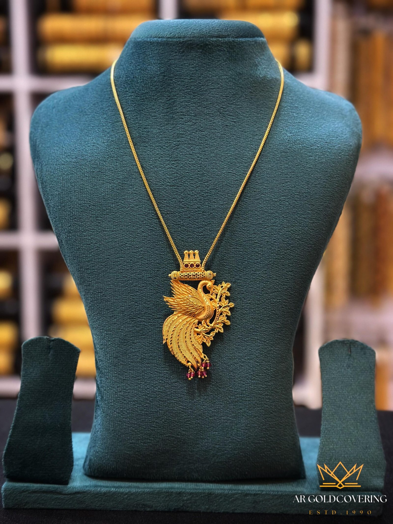 Gold plated 18inches peacock necklace with crystal beads(0066)