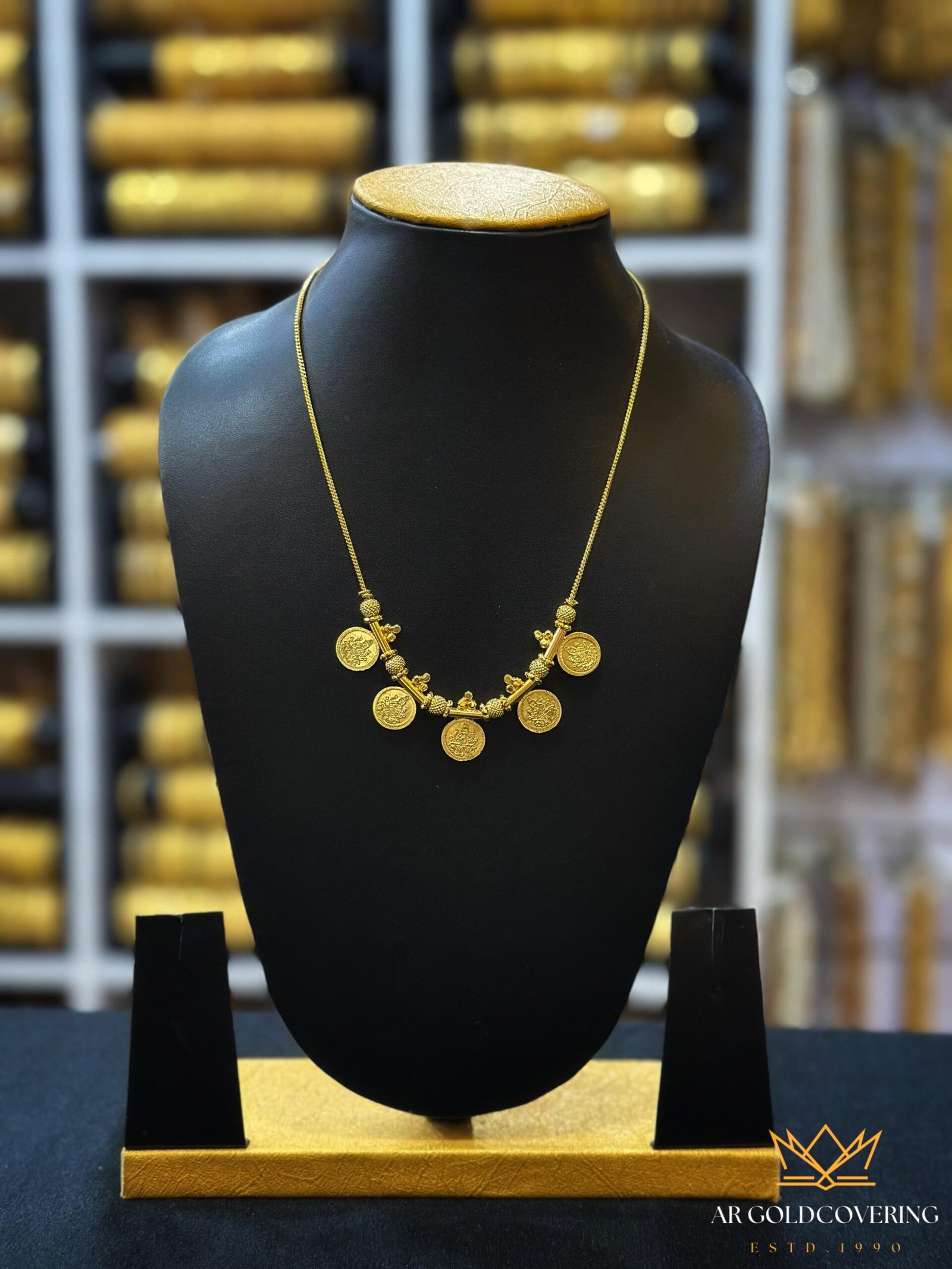 Gold plated 18inches simple Lekshmi kassu necklace(0041)