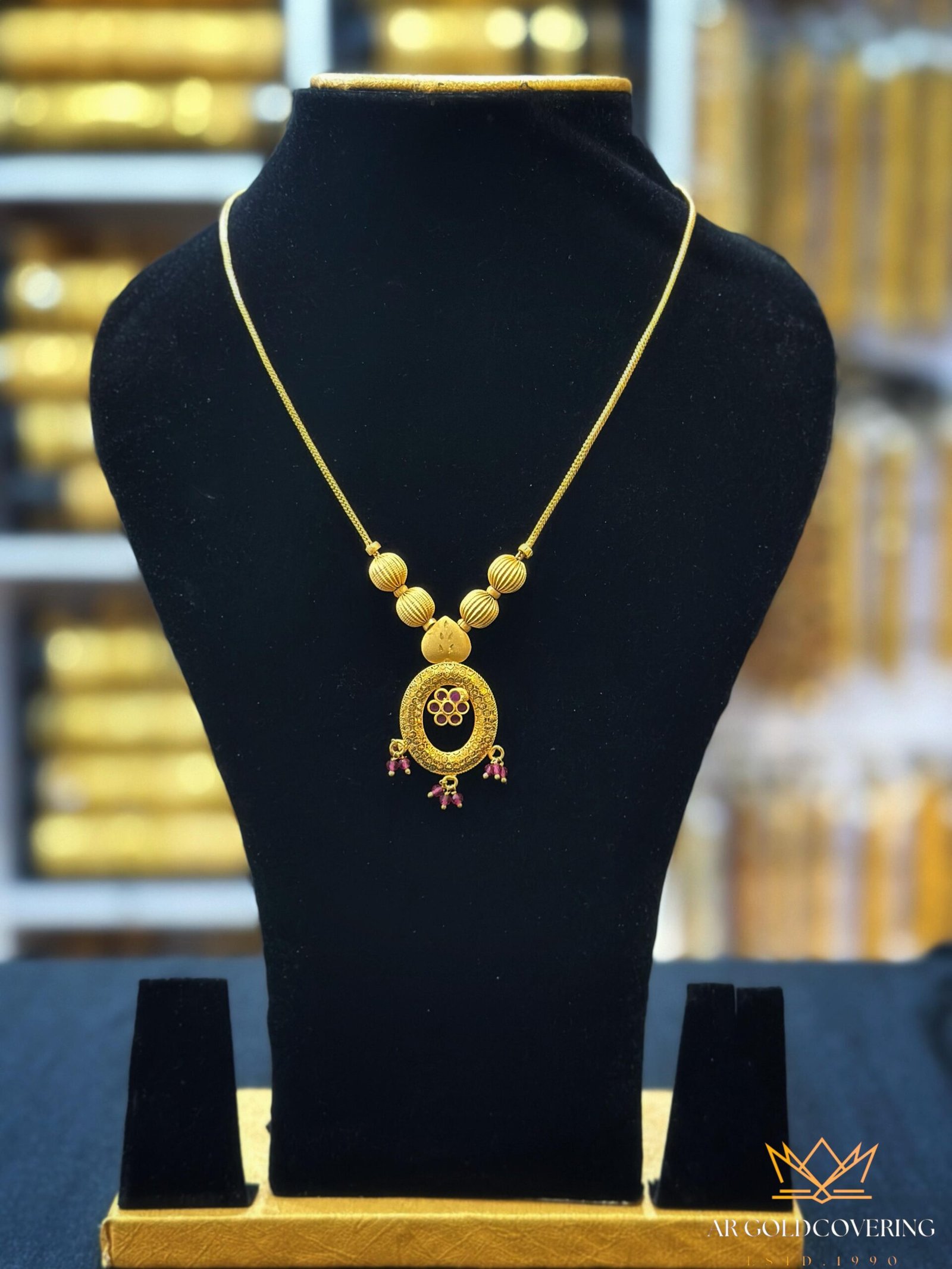 Gold plated 18inches simple necklace with Ruby stones and crystal beads(0007)