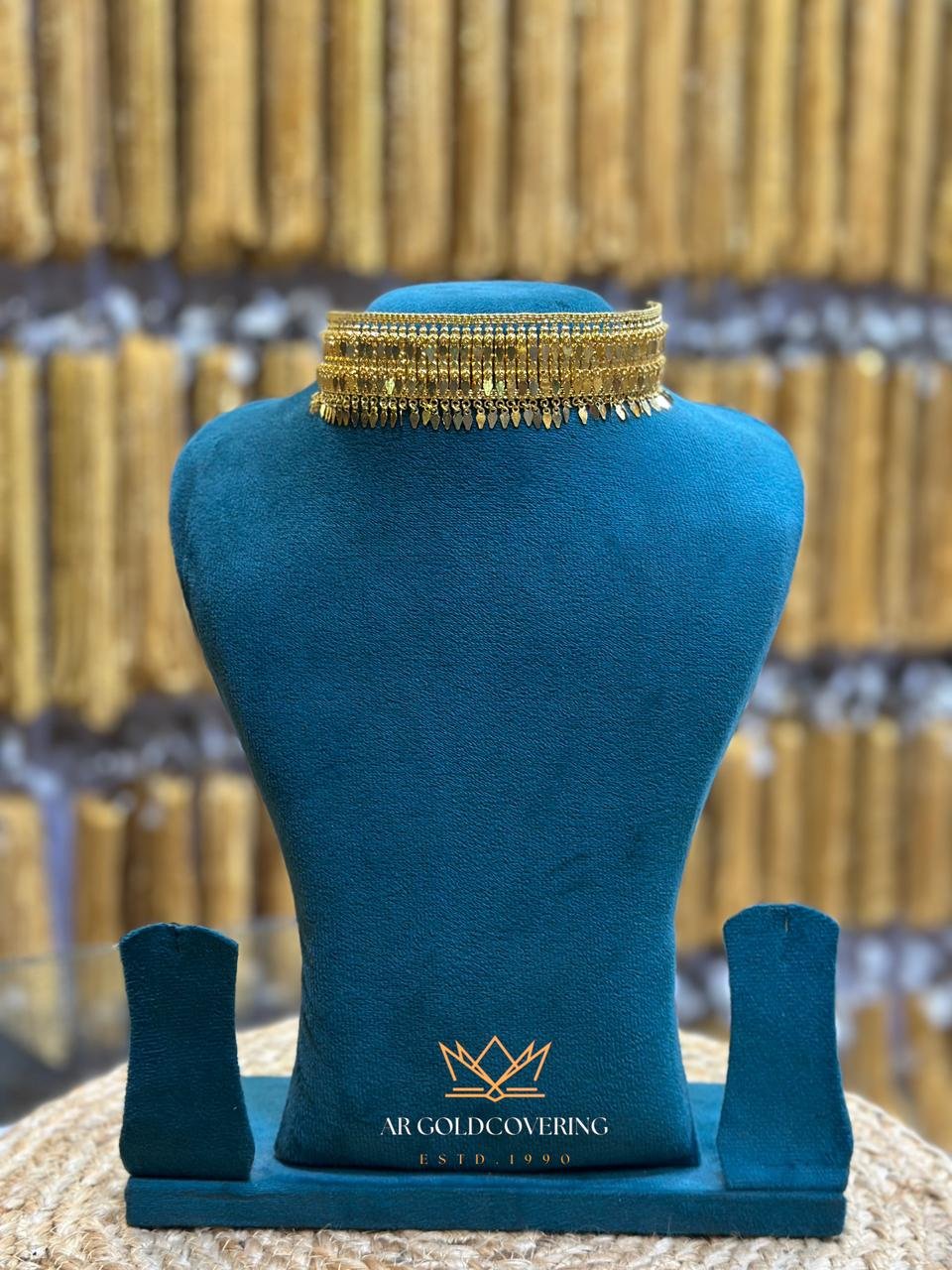 The Elakkathali is one of the most celebrated ornaments in Kerala’s heritage, known for its intricate rows of dangling gold-plated pieces that catch the light with every movement. This 3-line version offers a fuller, more luxurious silhouette, perfect for a traditional bridal ensemble.