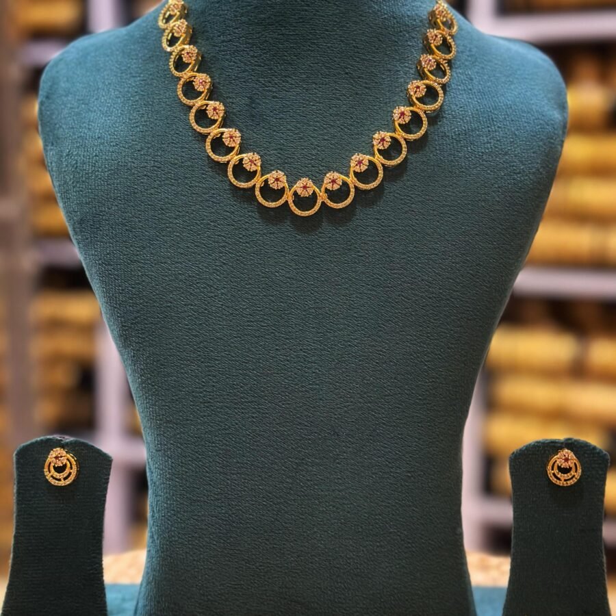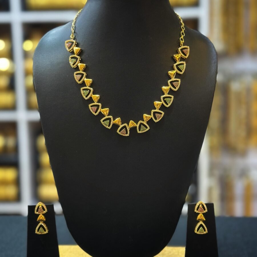 • Coordinated Statement Earrings: The set includes a pair of matching teardrop-style earrings that perfectly complement the necklace’s intricate pattern.
