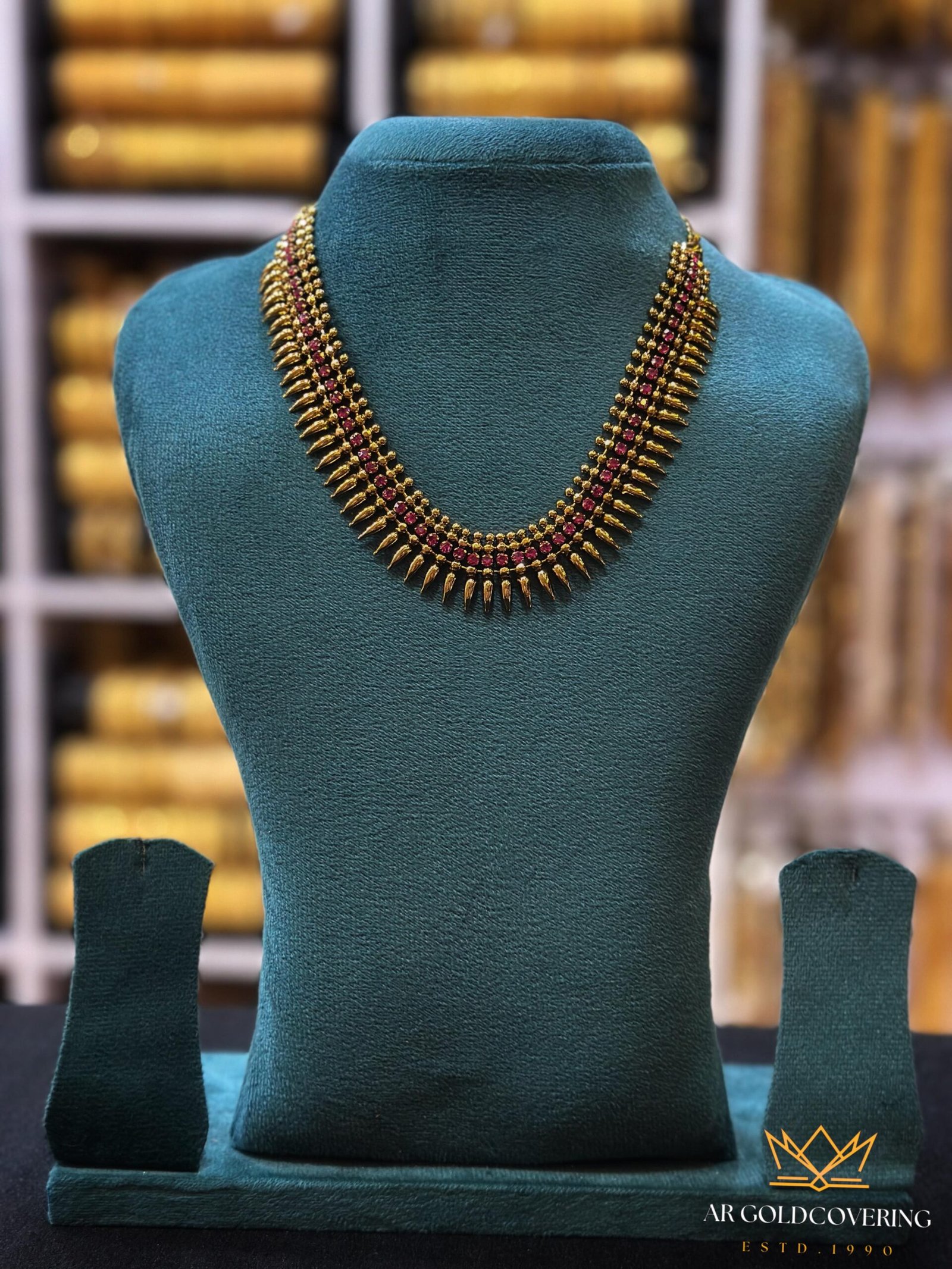 Gold plated antique finish Kerala traditional mullamutta necklace with Ruby stones(00119)