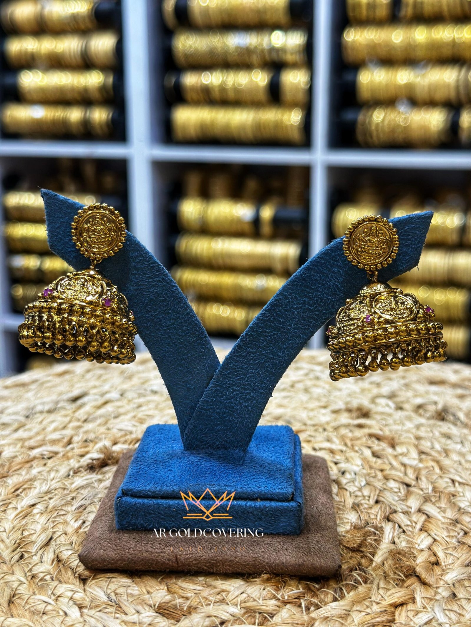 • Gem Accents: The earrings are often accented with vibrant AD stones (ruby-red) adding a festive and traditional pop of color.