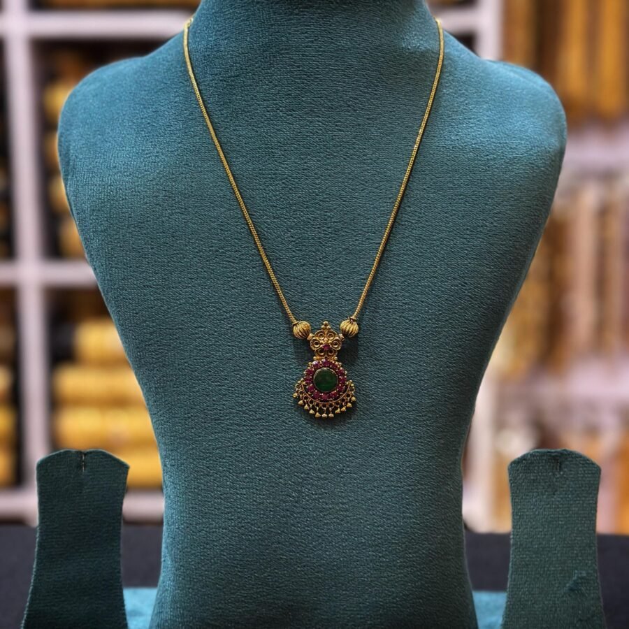 Embrace the timeless beauty of traditional South Indian jewelry with this exquisite Palakka Necklace. This piece combines the revered antique finish with authentic Palakka stones, creating a rich, heirloom-quality look.