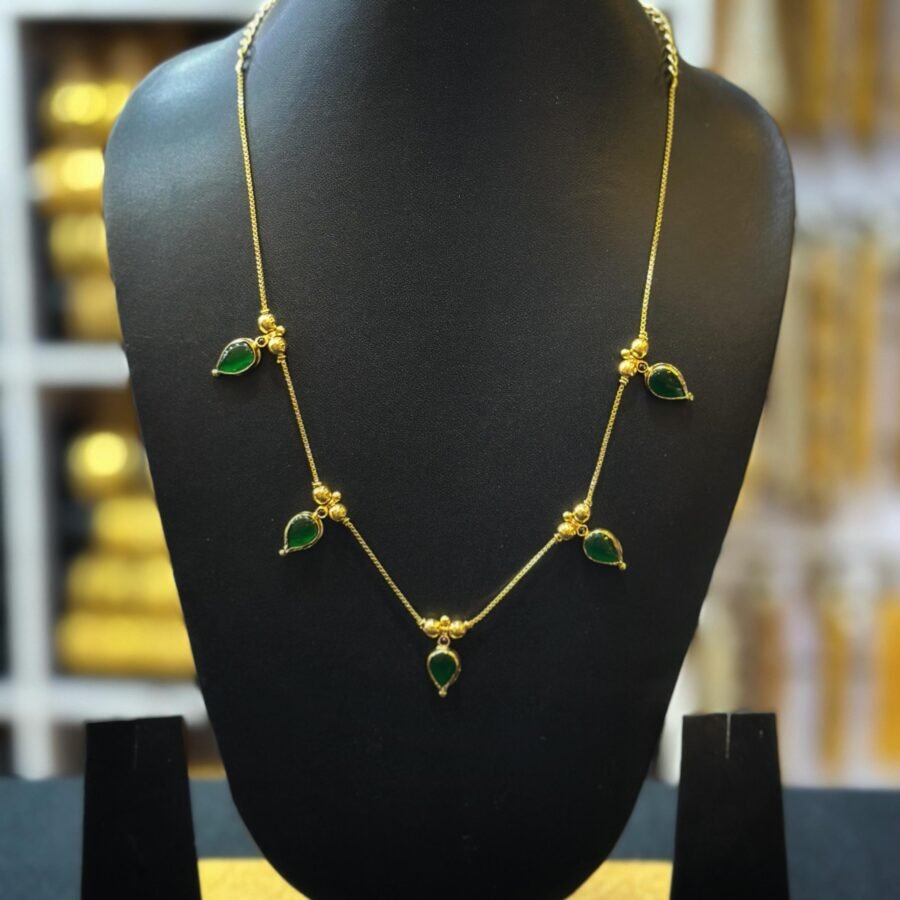 • Real Palakka Stones: This necklace features genuine Palakka stones, known for their distinctive green color and traditional mango-like shape, lending an authentic touch to the design.