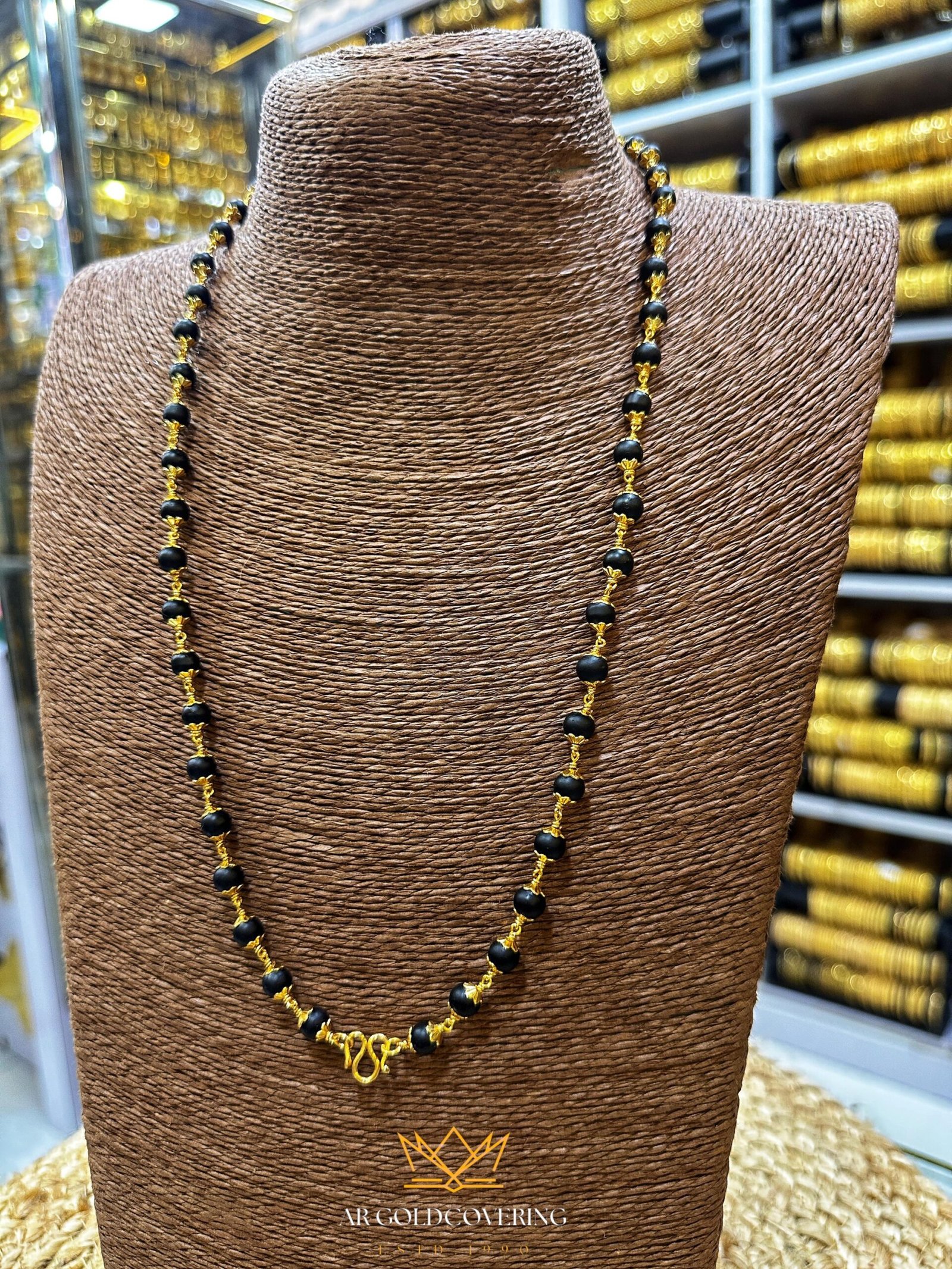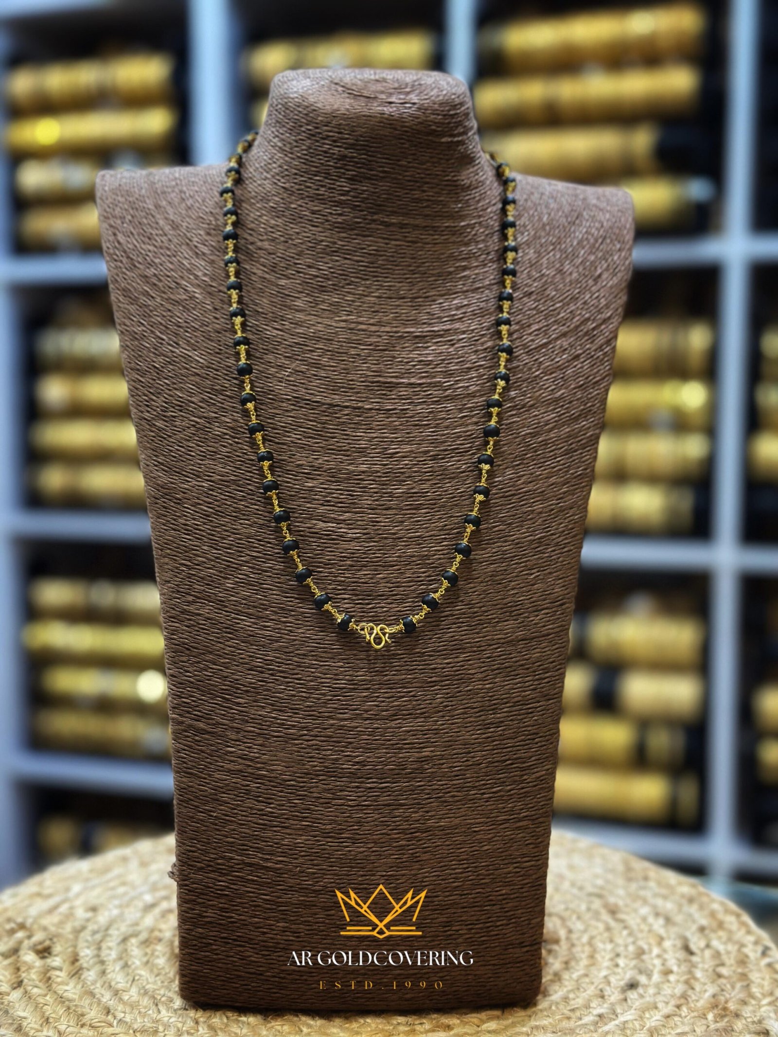 Embrace tradition with our premium Karingali Mala, featuring authentic black ebony wood beads intricately joined by high-quality gold plating. Unlike matte jewelry, this piece features a natural gold finish that radiates the brilliant shine of solid 22KT gold, making it a standout accessory for daily wear or special religious occasions.