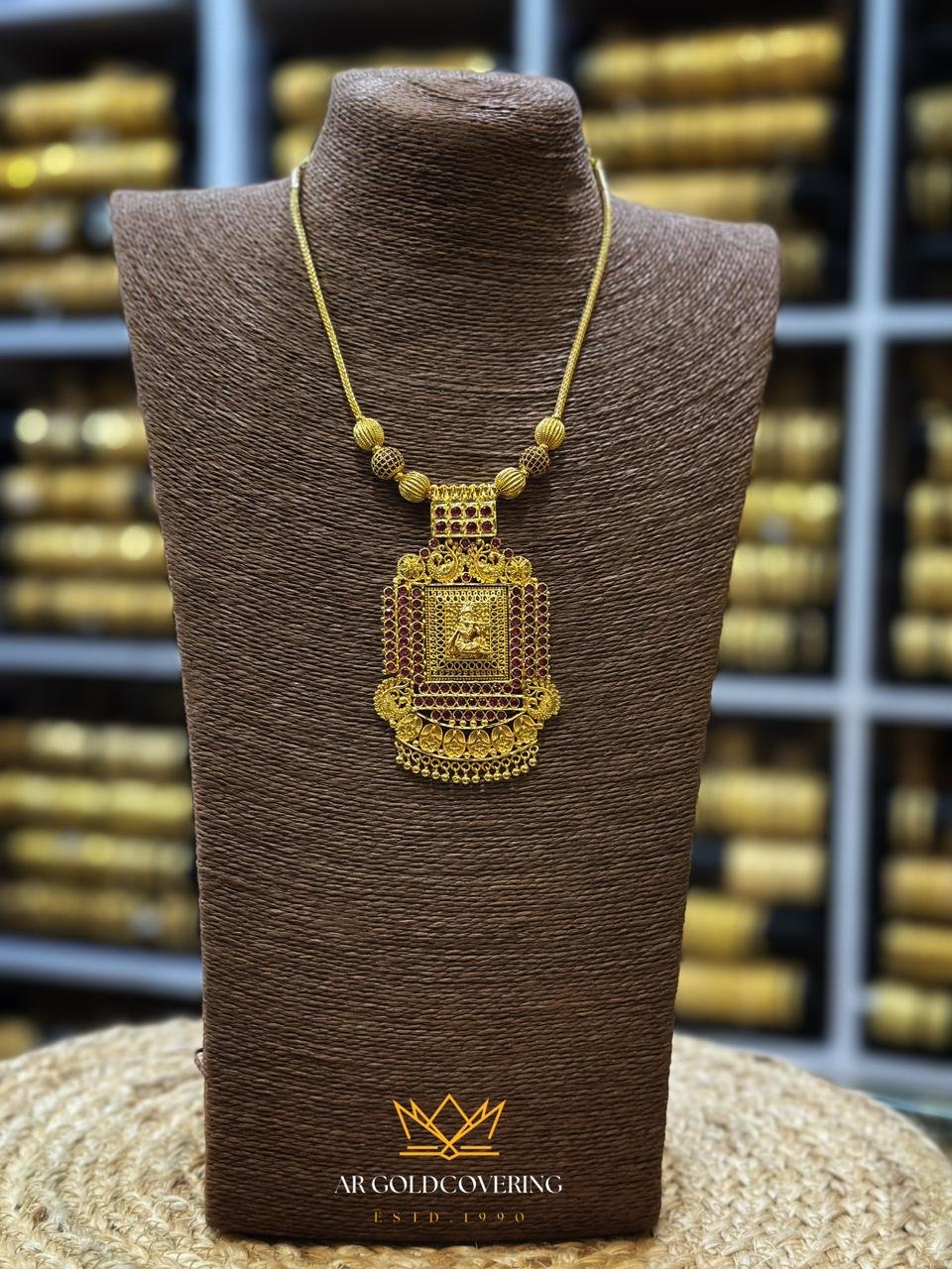• Heritage Beaded Chain: The pendant is suspended from a designer chain featuring traditional gold beads and textured elements for a complete look.