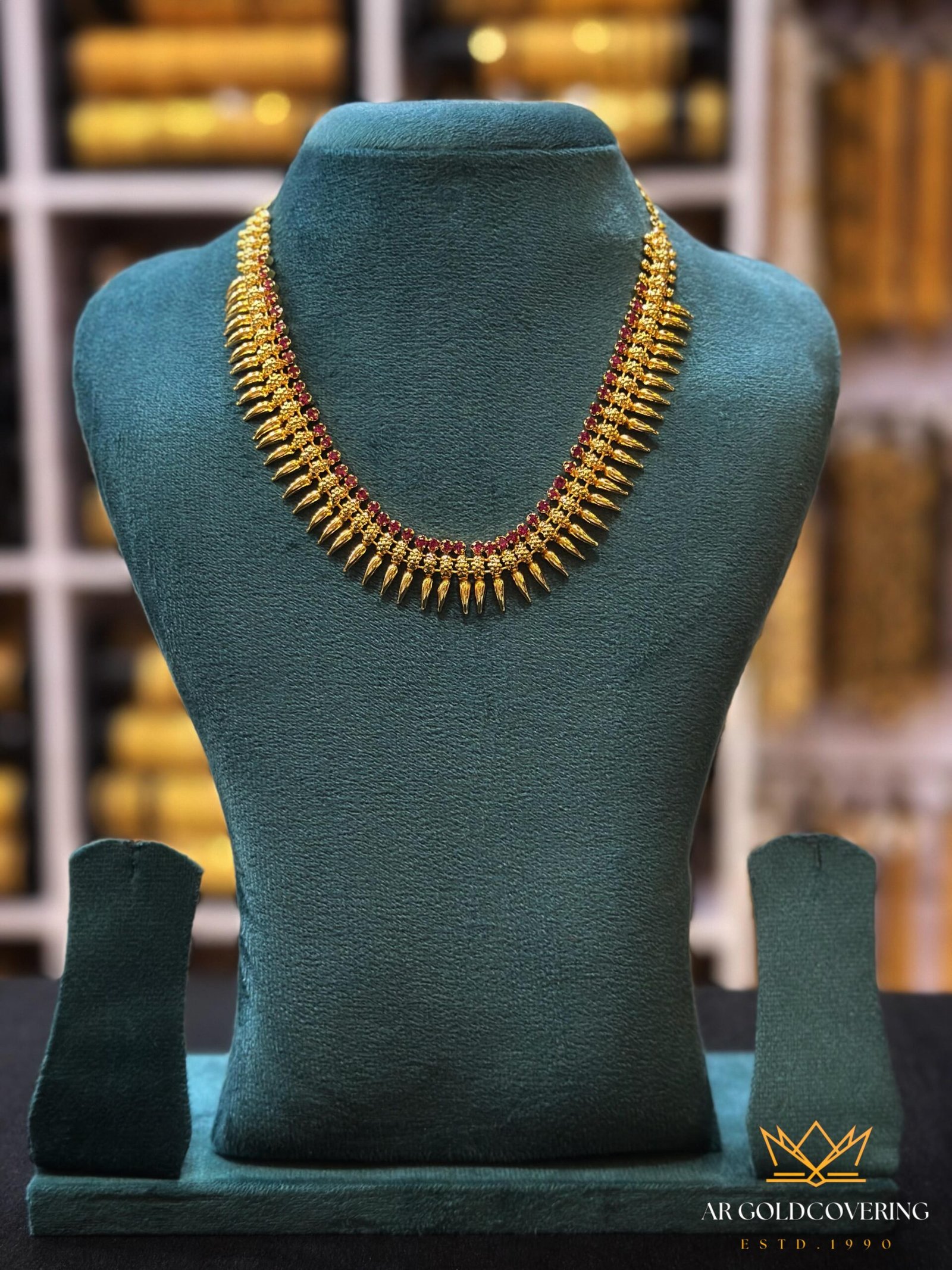 Gold plated mullamutta necklace with Ruby stones(0060)