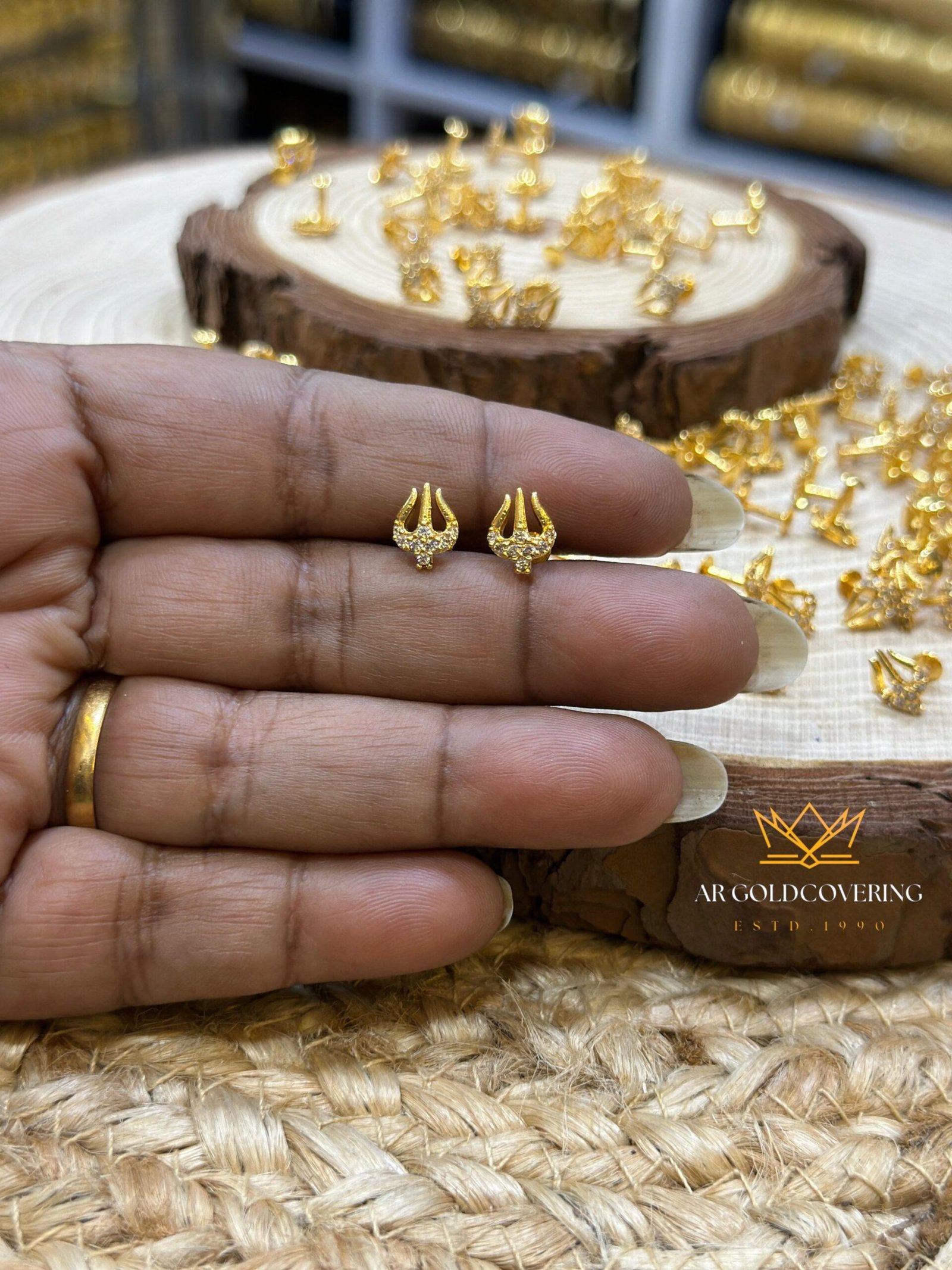 - Sacred Trishul Motif: Features a beautifully detailed trident design, a traditional symbol of power, accented with sparkling white stones for a touch of brilliance.