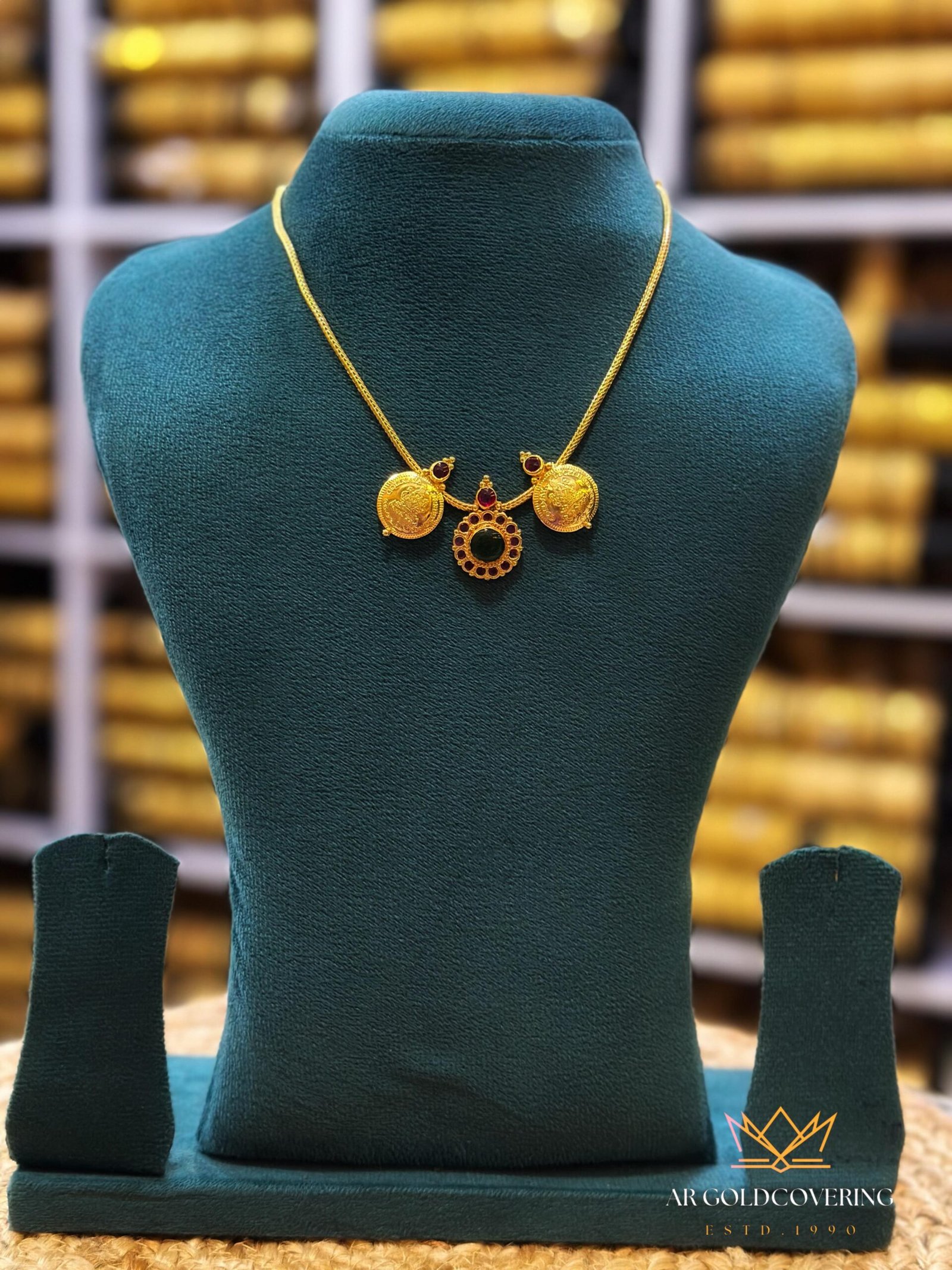 • Palakka Design: The classic chain is constructed with vibrant, round -shaped Palakka elements, a signature style of Kerala temple jewelry.