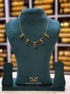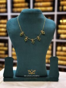 This elegant Gold Plated Palakka Necklace features the traditional style of South India combined with a durable and modern Box Chain. It is designed to be a lightweight, comfortable piece for daily wear or adding a touch of classic heritage to any outfit.