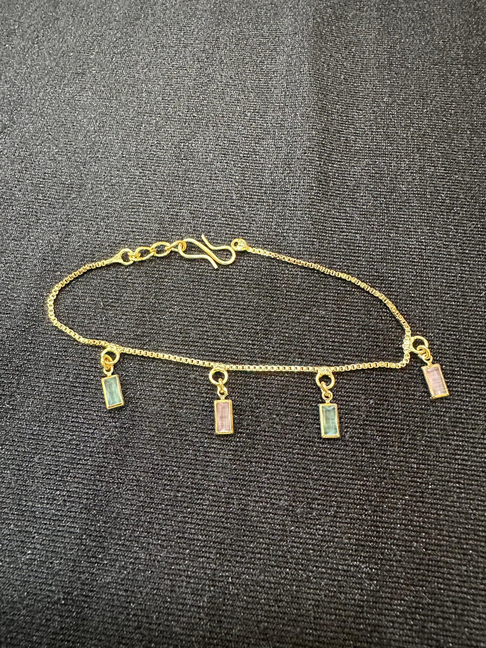 This fashionable bracelet is a simple way to add a flash of gold and color to your wrist. It’s designed to be modern and is perfect for adding to your everyday look.