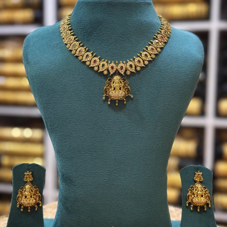 Gold plated Antique finish Lekshmi short haram with earrings (00247)